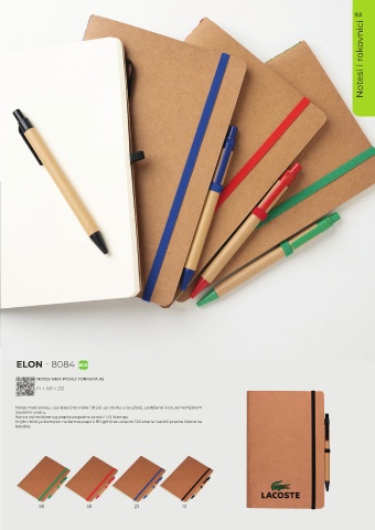 Notes meki povez, uža elastična traka i držač za olovku u istoj boji, zaobljene ivice, sa hemijskom